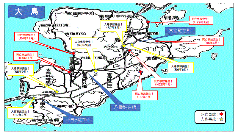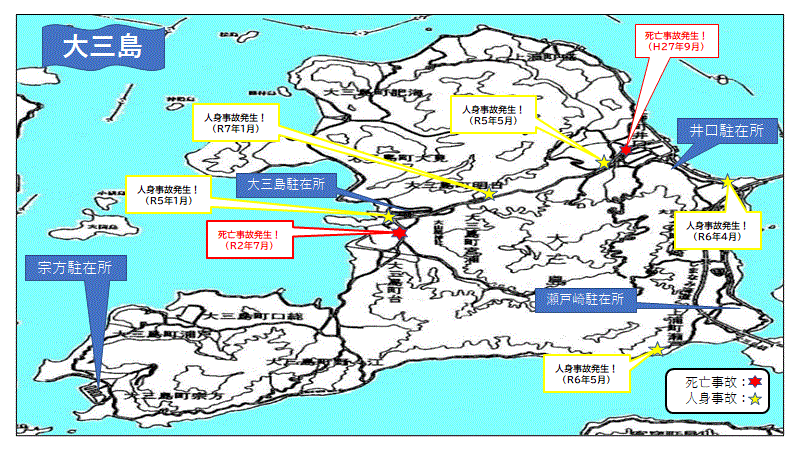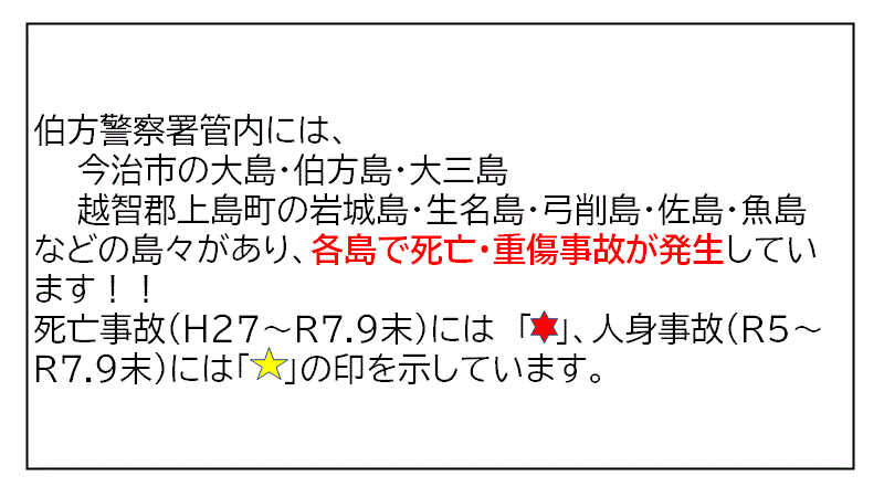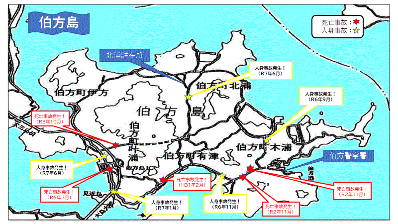 | 伯方署管内の事故マップ | ||||||||||||||||||