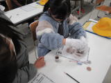 鑑識さんから指紋の探し方の説明を受けた後、実際に指紋を検出いたしましたのよ。