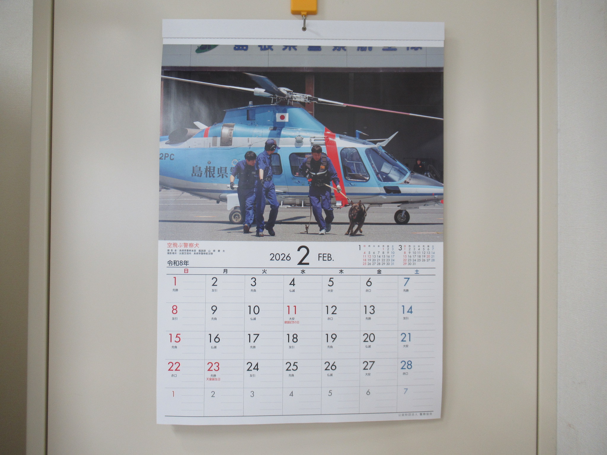 2月です。2月になりましたので、1月のカレンダーをめくりました。