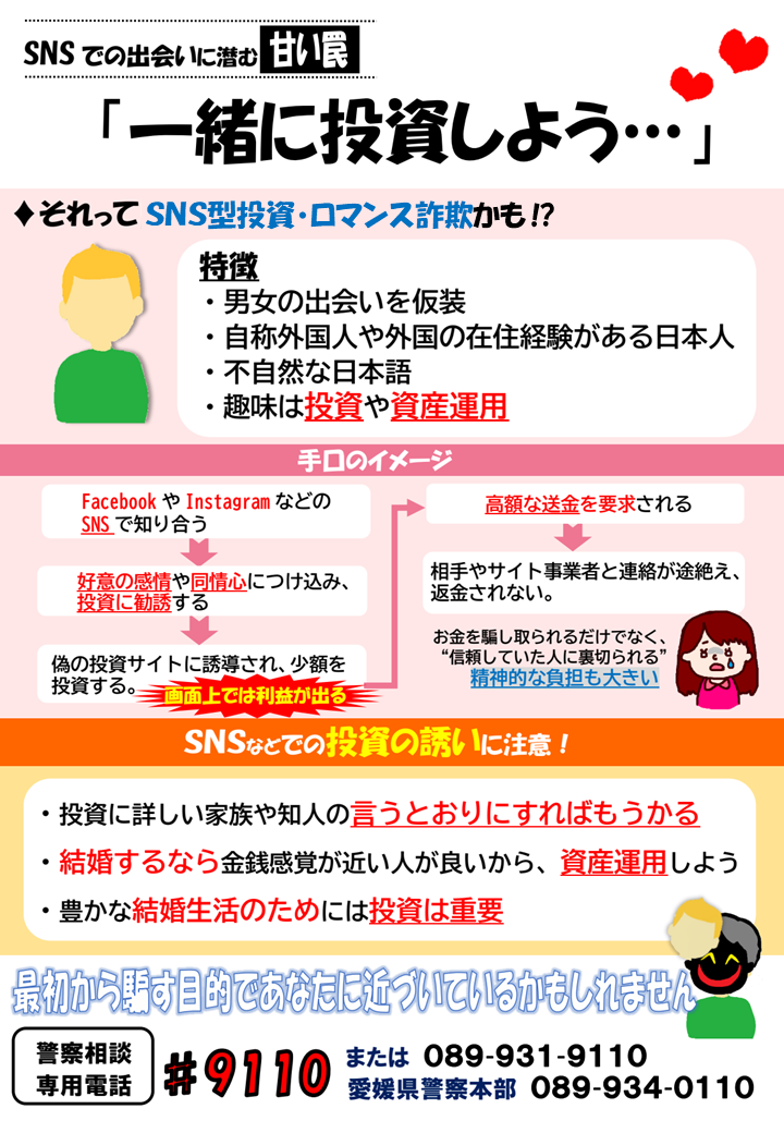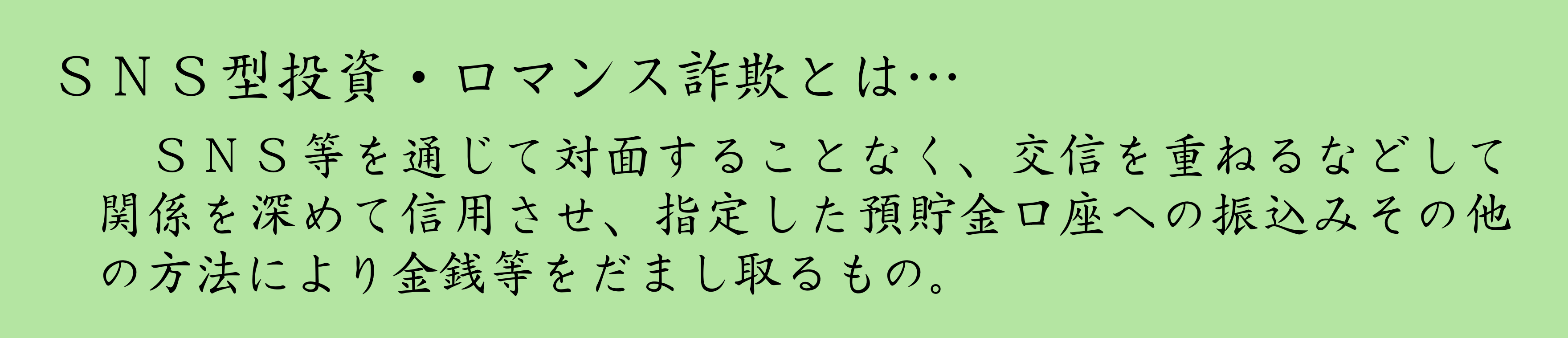 トップ各部門刑事部特殊詐欺、SNS型投資・ロマンス詐欺対策ページ>SNS型投資・ロマンス詐欺の手口と対策